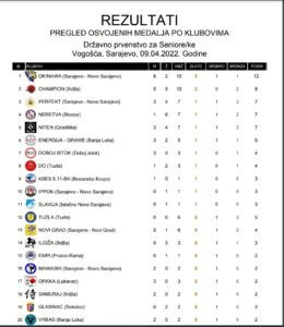 U subotu, 9. aprila u Vogošći je održano Državno prvenstvo za seniore/ke na kojem su nastupili i klubovi iz KSRS.